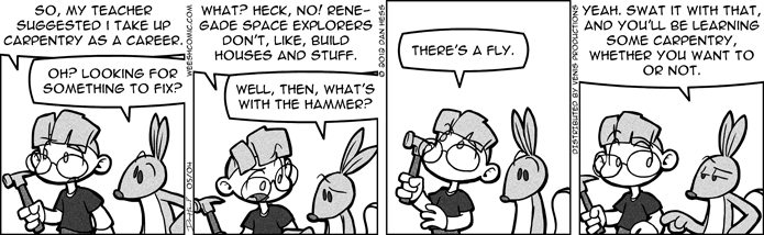 This isn't the last you'll see of Weesh, however. I've only compiled the first four years of strips into books thus far, which means there's three more books to come out in the near future, once I assemble the pages and create the original content. Yes! If you weren't aware, the Weesh books feature artwork and stories you won't find anywhere online. Head over to the Store page to pick them up, if you haven't already.